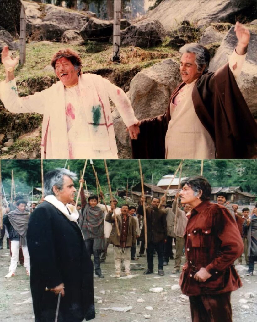 फिर जैसे ही वो शूटिंग के लिए कैमरा के सामने आए तो सुभाष घई ने एक दफा फिर से उनसे कहा कि दिलीप कुमार के चेहरे पर सामने की तरफ रंग मत डालिएगा। साइड में लगाइएगा। कैमरा भी ऐसे ही सेट किया गया है। राजकुमार का गुस्सा अब सातवें आसमान पर चढ़ गया। जैसे ही सुभाष घई ने एक्शन बोला, राजकुमार ने रंग की थाली उठाई और दिलीप कुमार के चेहरे पर सारा रंग डाल दिया। दिलीप कुमार की आंखों में भी रंग चला गया। और चूंकि उन्होंने लैंस पहने हुए थे तो उनकी आंखों में जलन होने लगी।